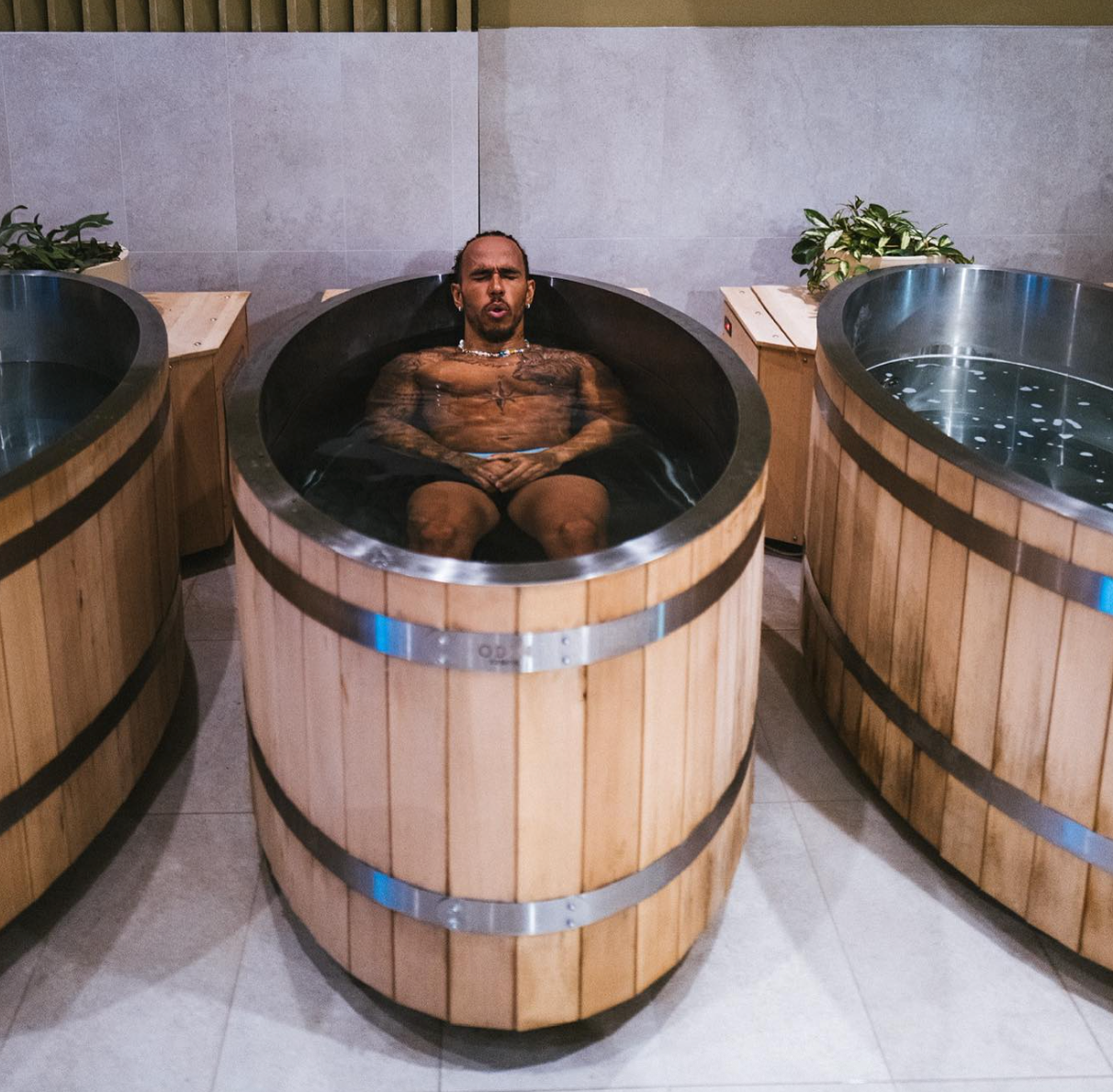 Lewis Hamilton, 7-time F1 World Champion, is known for incorporating ice baths into his post-race recovery to handle the immense G-force stress and muscle fatigue endured during races.