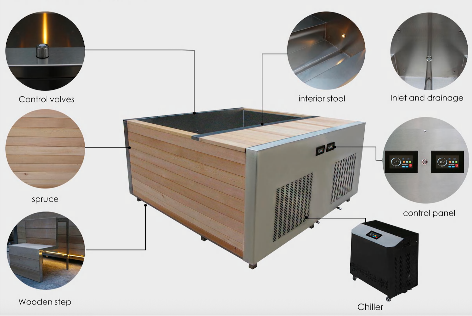 All of our Ice Baths are made from high quality stainless steel, thermo wood, or acrylic.